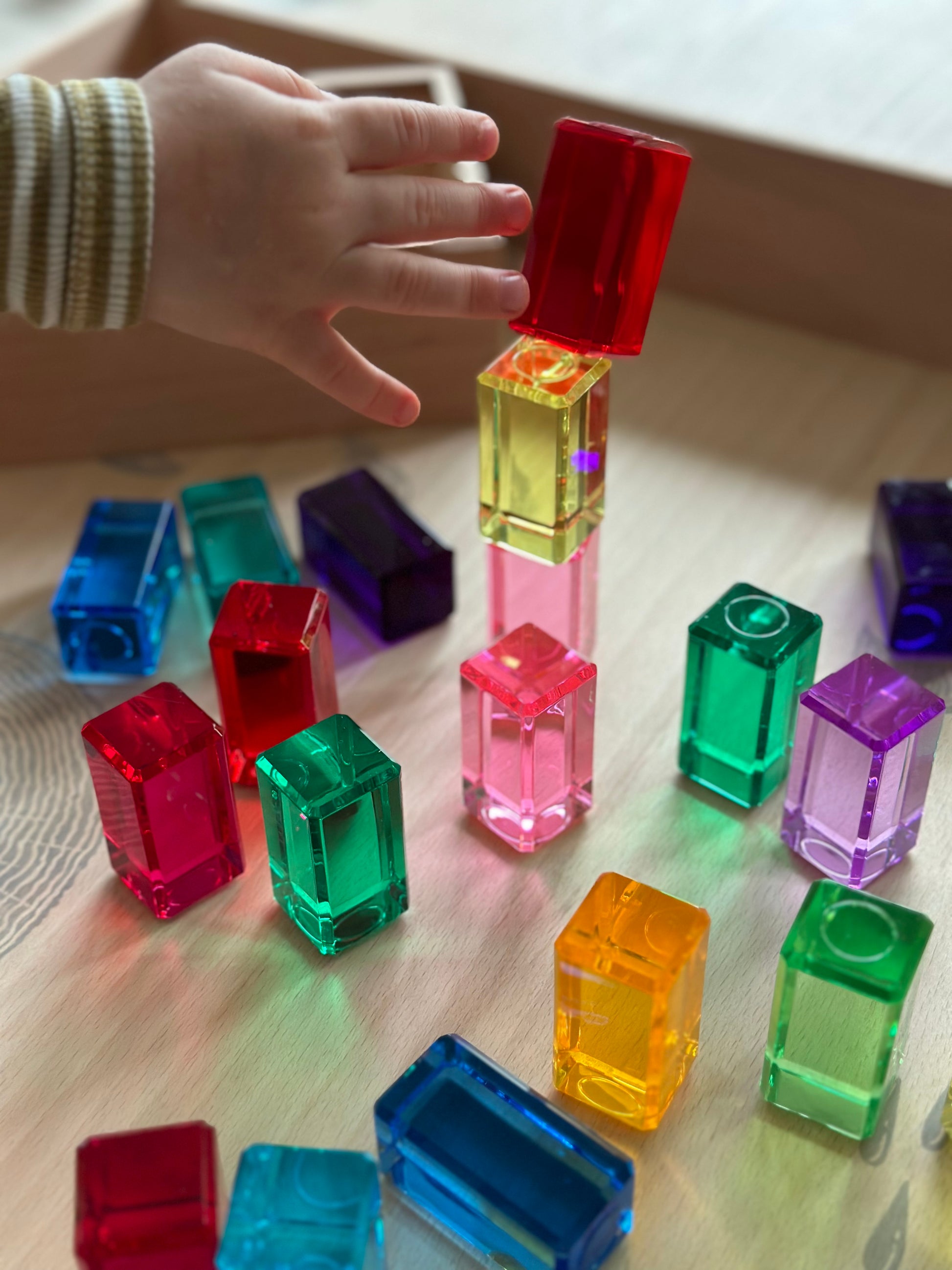 Das Set ist auch ein tolles Hilfsmittel, um Farben und Lichtreflexionen zu entdecken. Das transparente Acrylglas in verschiedenen Farben lädt zum Experimentieren mit Lichtquellen ein – ein Spielzeug, das gleichzeitig Spaß macht und den Entdeckergeist weckt.