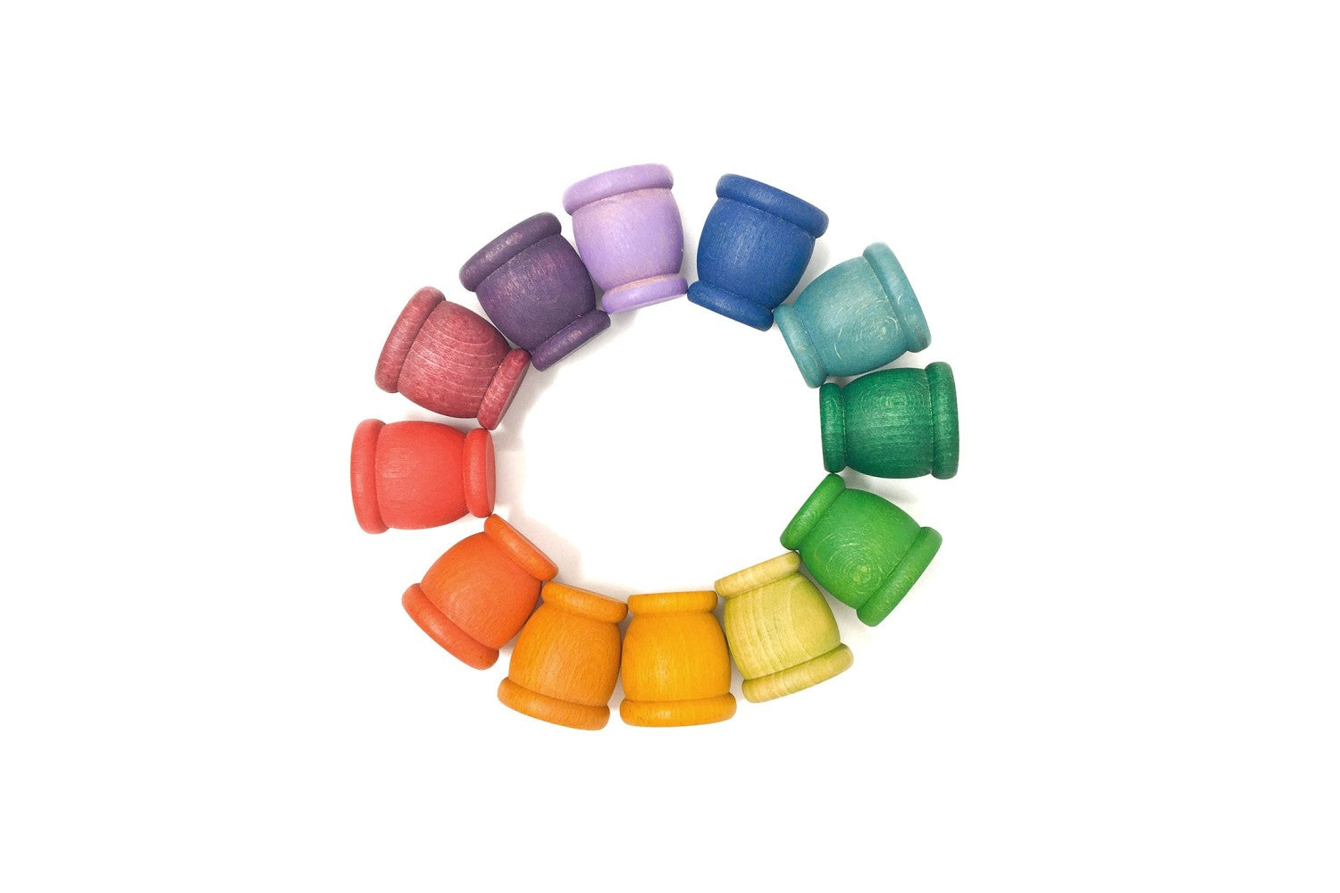 Diese zwölf charmanten Holzfiguren laden Kinder zu fantasievollen Rollenspielen und kreativem Gestalten ein. Jede Figur ist liebevoll aus nachhaltigem Holz gefertigt und in leuchtenden Regenbogenfarben gestaltet, die die Sinne anregen und die Farbwahrnehmung fördern.
