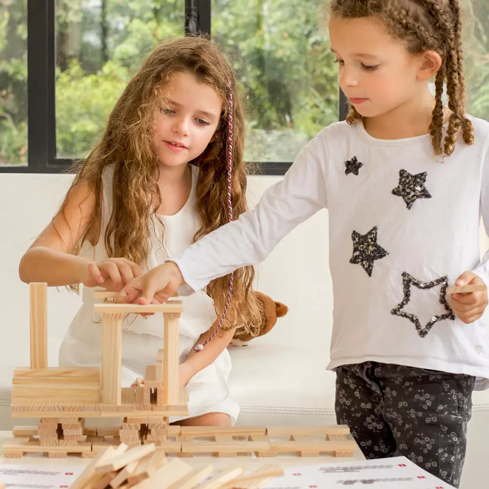 Die Bausteine bestehen aus hochwertigem, nachhaltig produziertem Kiefernholz, das sorgfältig nach strengen Qualitätsstandards verarbeitet wurde. Sie sind absolut sicher für Kinder und dank der genial einfachen Konstruktion ein perfektes Werkzeug, um die Kreativität zu fördern und die Konzentration zu schulen. Das beiliegende „Grüne Buch“ erweitert die Spielerfahrung und enthält spannende Bauideen, die inspirieren und spielerisch neue Herausforderungen schaffen.