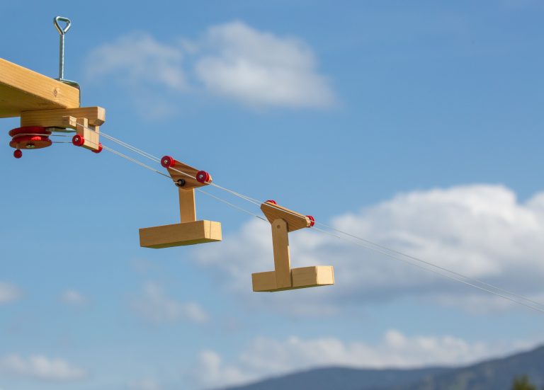 Mithilfe der detaillierten Anleitung können Kinder gemeinsam mit ihren Eltern die Seilbahn selbst aufbauen und erleben anschließend spannende Experimente. Ob drinnen im Kinderzimmer oder draußen im Garten – die Mini Seilbahn sorgt für Begeisterung und darf überall zum Einsatz kommen. Dank der zwei Wagen sind interessante Versuchskombinationen möglich, wie etwa das Hin- und Herschicken von kleinen Gegenständen oder Entdecken der unterschiedlichen Transportgewichte.