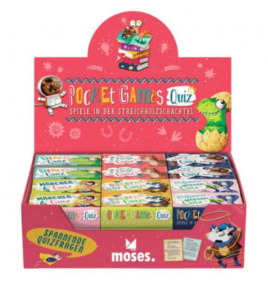 Machen Sie mit dem Moses - Pocket Games Quiz Pausen und Reisen zu einem besonderen Erlebnis, bei dem Lernen und Spaß Hand in Hand gehen. Das Kartenspiel bietet die perfekte Möglichkeit, Zeit miteinander zu verbringen und ganz nebenbei Wissen aufzubauen.