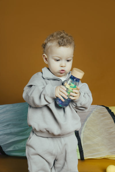 Das durchdachte Design des Spielzeugs wurde speziell auf die Bedürfnisse der Kleinsten abgestimmt. Schütteln, Drehen oder Bewegen lassen die kleinen Elemente im Inneren sanft umher tanzen und erzeugen dabei beruhigende Geräusche. Babys und Kleinkinder werden spielerisch angeregt, visuelle und auditive Reize zu erkunden und verbessern dabei ihre motorischen Fähigkeiten.